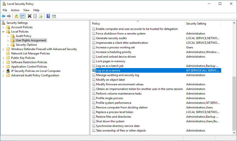 The user is not allowed to run anything as a service, so the steps to fix are below: